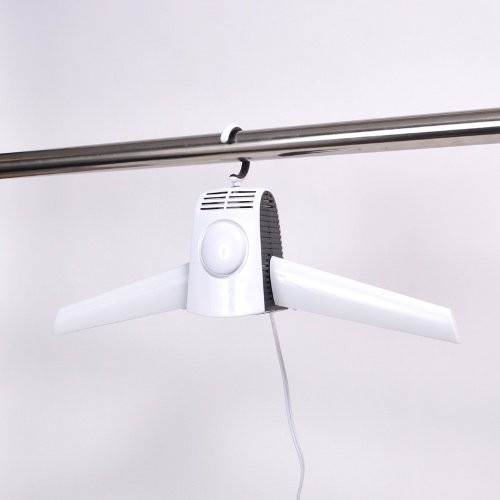 这款产品的巧妙之处,就是将衣架和干衣机两者结合了,干衣机放置在衣架的中央,出风口设置在衣架的下方。用户直接将衣服或鞋子等挂在衣架上,打开衣架中央的开关按钮,就可以直接进行烘干了。如果有酒店人感兴趣,可以到Thanko官网上进行购买,每套连配件售5980日元。