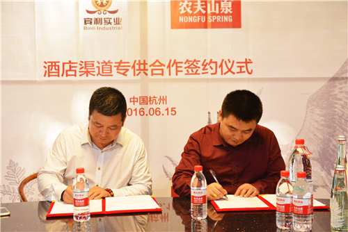 2016年6月15日下午,杭州宾利酒店用品有限公司与农夫山泉股份有限公司强强联手,在杭州海外海酒店用品市场举办了战略合作签约仪式。