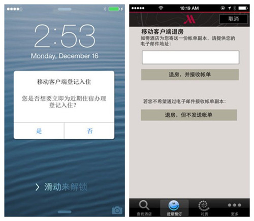 另一家巨头喜达屋则与世界上最大的锁具制造商Assa Abloy共同打造了SPG智能入住软件,目前已在雅乐轩、源宿、W酒店三个品牌全球150多家酒店共计30000多间客房推出。用户除了可以免去前台登记手续外,还可以直接通过SPG应用程序,用手机开门。