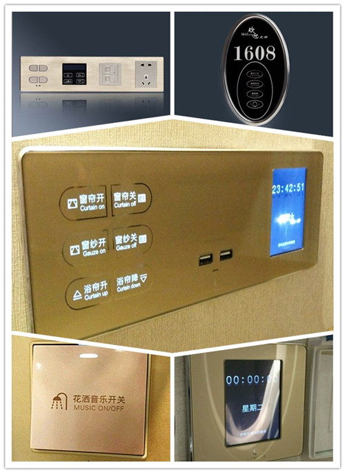 除了以智能化体验,麗枫酒店还与普杰智慧酒店客控系统厂家合作,推出了智能门显、专用蓝牙触摸墙体背景音乐开关、四连体轻触开关等,方便住客操作。