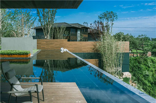 地温系统和燃气系统结合的温控智能化,余热既解决了泳池景观用水,又实现了绿色智能化。