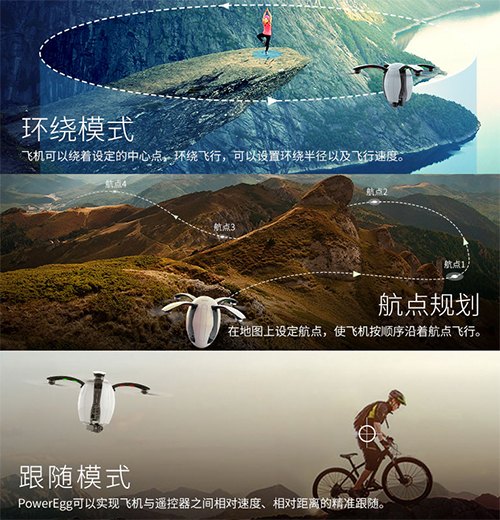 这款无人机给我的第二购买点就是它的简单操作。一键起、返航,起航时可以自动在预定好的高度进行定点悬停,然后通过体感式自由操作无人机,简单方便。它还有一项独特的安全飞行机制,无论在飞行过程中遇到何种突发状况,只要释放开关,PowerEgg将自动悬停,保证飞行安全。同时其将锁定机身与遥控器的最小距离,避免飞机进入用户为中心的安全半径,较大程度保证用户的操作安全。在每次飞行中可以在APP中设定一个安全飞行区域,锁定无人机最大的飞行范围,避免操作失误带来的安全隐患。这对像老编这样的新手一个安全爆炸,等熟练了各种花式技能甩在观众大姥爷们脸上,哈哈哈…