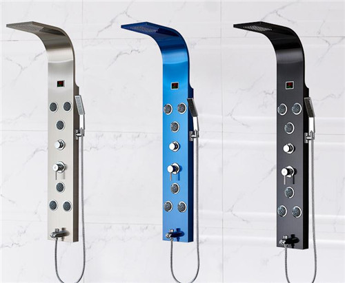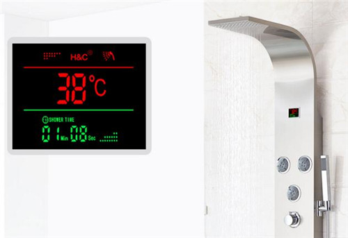 光看取名就知道这是个复杂的玩意,海辰数显淋浴屏花洒。首先映入眼帘的是充满玄机的正面,让人瞬间忽视这是一款洗浴花洒。三个水龙头设计加上6个特殊喷水口,有种机关重重的感觉。金属拉丝的材质,显得十分现代化科技感。小小的显示屏,通水即显示,洗浴模式时的水温以及单次洗浴时间。让你一眼目睹当前水温值,内部设置的恒温控制,能够有效控制水温,妈妈再也不用担心洗澡被烫个半死了。要是能够有记忆功能会更佳,不用每次都需要手动调节控制。