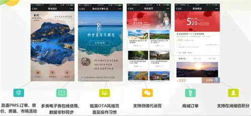 从电子卡券领取、酒店预订到在线选房,从iPad/自助机自助登记到微信开门,从微信支付自助退房到在线点评、优惠券&红包分享,绿云在酒店公众号打造了完美的闭环和流畅的用户体验。而微官网、微商城、红包+优惠券+互动游戏为微信预订提供了更多流量和订单,无疑是当下最有效的在线直销渠道之一。