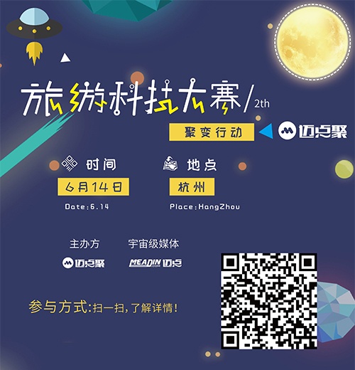 6月14日,聚变行动暨旅游科技大赛即将在杭州梦想小镇将就举行。本次活动由迈点聚、杭州海龟谷创业服务有限公司主办,杭州未来科技城管委会、杭州两创示范办公室指导,浙大科技园、菜根科技、VBros协办。邀请了数百位各界精英齐聚一趟,对8个领域的创新项目进行深度探讨,重新定义旅游产业的创新。