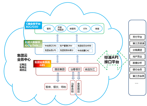 通过扬子江集团和绿云项目团队成员几个月的深入调研、细致沟通,形成了切合实际的项目建设方案。在建立涵盖酒店、餐饮、食品加工等业态的集团业务系统GBS的基础上,完成涵盖集团营销CRS、会员LPS、客户CRM以及中央结算、集团经营分析和审计等功能的集团大数据中心(Big Data)建设;通过建立集团微信、官网等途径完成线上线下一体化的O2O营销闭环,通过淘宝旗舰店、OTA等第三方平台完成基于B2C模式的线上营销合作,从而为客户提供多渠道高效便捷的游购新体验。
