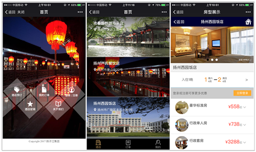 目前,通过绿云项目团队成员和扬子江集团的共同努力,在绿云iHotel云PMS基础平台业务的支撑下,集团酒店云PMS系统、冶春餐饮云POS系统、集团管理平台和集团数据中心已经投入运营。集团官网和微信平台已经实现了对酒店客房、冶春和卢氏餐饮的全面预定功能,在线商城、会员和分销管理等方面也已经完成相应功能的建设,投入使用。