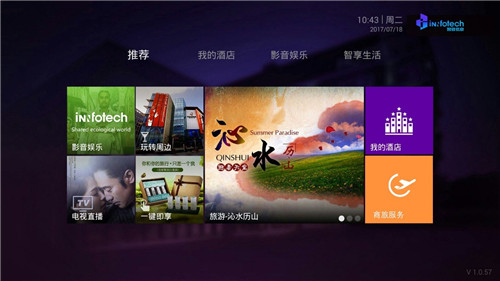 驿享酒店生活平台是智驿信息为酒店打造的增值服务平台。围绕酒店生活与旅宿消费,驿享酒店生活平台为酒店设计了一键即享与本地服务两个版块。宾客既可以在酒店电视上下单购买急需的物品,快速配送至酒店客房内,也可以在酒店电视上查询酒店周边的景点、餐饮、出行、购物等商户资源信息,选择到店服务。而精致乐活平台通过与各品牌的合作,为消费者提供既具趣味性又有服务价值的信息服务。