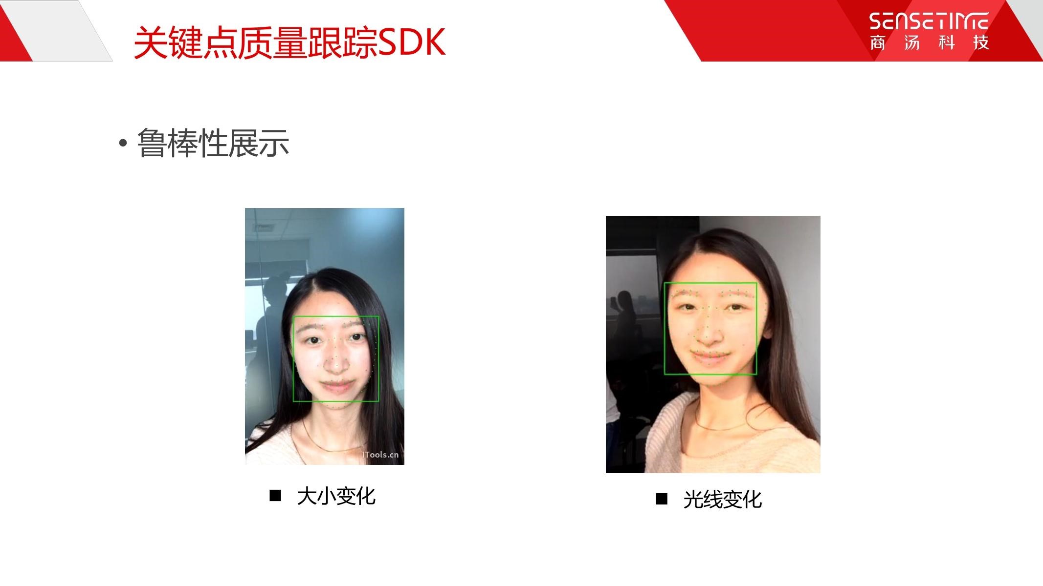 SenseTime移动端娱乐化是为互联网行业客户提供的移动端软件开发和云服务,包括SenseMe,SenseID和SenseMaster三个产品,其人脸和图像的各项技术功能、识别效果和翻译效率等性能指标在业内也是不错。其通过人脸106个关键点来获取细微的面部结构信息, 并再复杂的交互场景中供面特效和美颜等功能调用,覆盖已超过2亿用户。