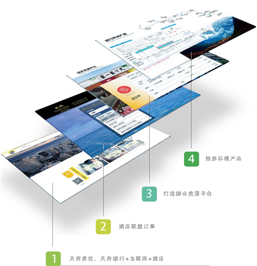 为天府银行打造银行+互联网+酒店的区域酒店互助平台,实现了“酒店+航空+景区+旅行社+游客的”旅游产业全覆盖。