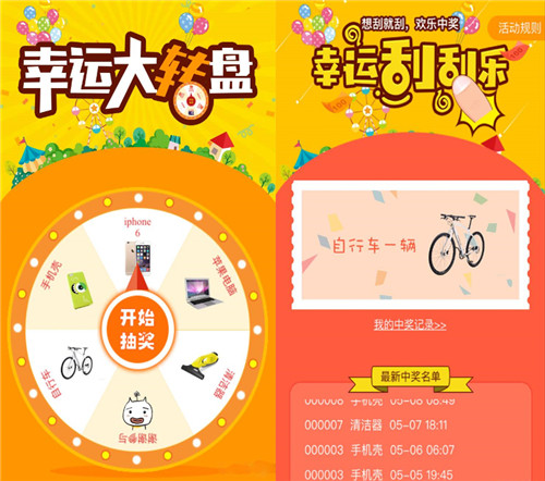1. 幸运大转盘、刮刮乐抽奖