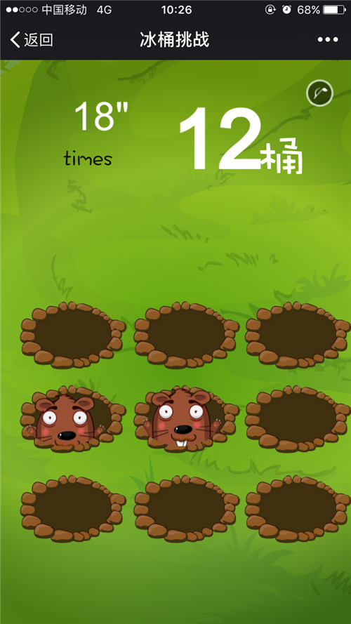 在一定时间内点击屏幕中的小地鼠,将冷水泼到地鼠身上,根据成功次数形成挑战排行榜,不同名次发放不同奖品。