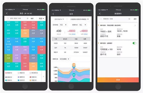 MiHotel功能包含了PMS应用功能、数据分析功能和集团管理等功能,PMS应用功能包含房态、房情、预定、订单管理、餐饮订单、会议订单管理等功能,把PMS应用功能完美地在移动端进行体现;数据分析功能可以实时查看、管理和预警营业收入、对比分析、客源结构、房类预测、会员等;集团管理功能可以对集团内部多酒店的核心指标进行分析、排名,从而更好地分析各酒店实时经营情况。系统还包含首页常用功能编辑排序、多酒店切换等公用功能,未来还会上线扫码登录、扫码核销餐券等应用。