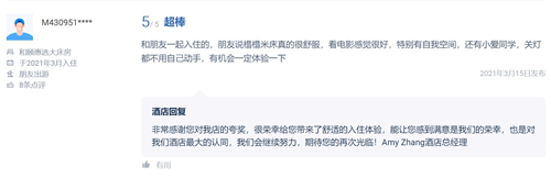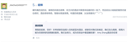 和颐酒店因极富设计感的环境,俘虏了客人体感的第一线,又因智能客房增加了客人的特色记忆,吸引他们在OTA平台留下评价。