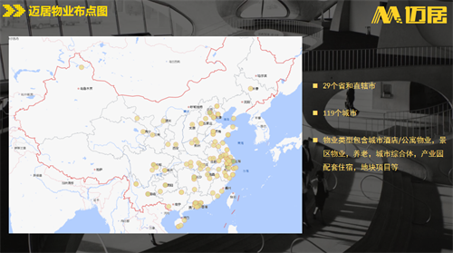 迈居精耕产业资源渠道,物业布局广阔,覆盖面广、覆盖基数大,涉及29个省和直辖市119个城市,物业类型包含城市酒店/公寓物业,景区物业,养老,城市综合体,产业园配套住宿,地块项目等,其占比在新一线高达46%;一线27%;二线和三线也都拥有着不俗的表现,广阔的物业布局为酒店业主提供多元化的选择,满足了不同酒店业主想要进军中高端市场以及布局下沉市场的需求。