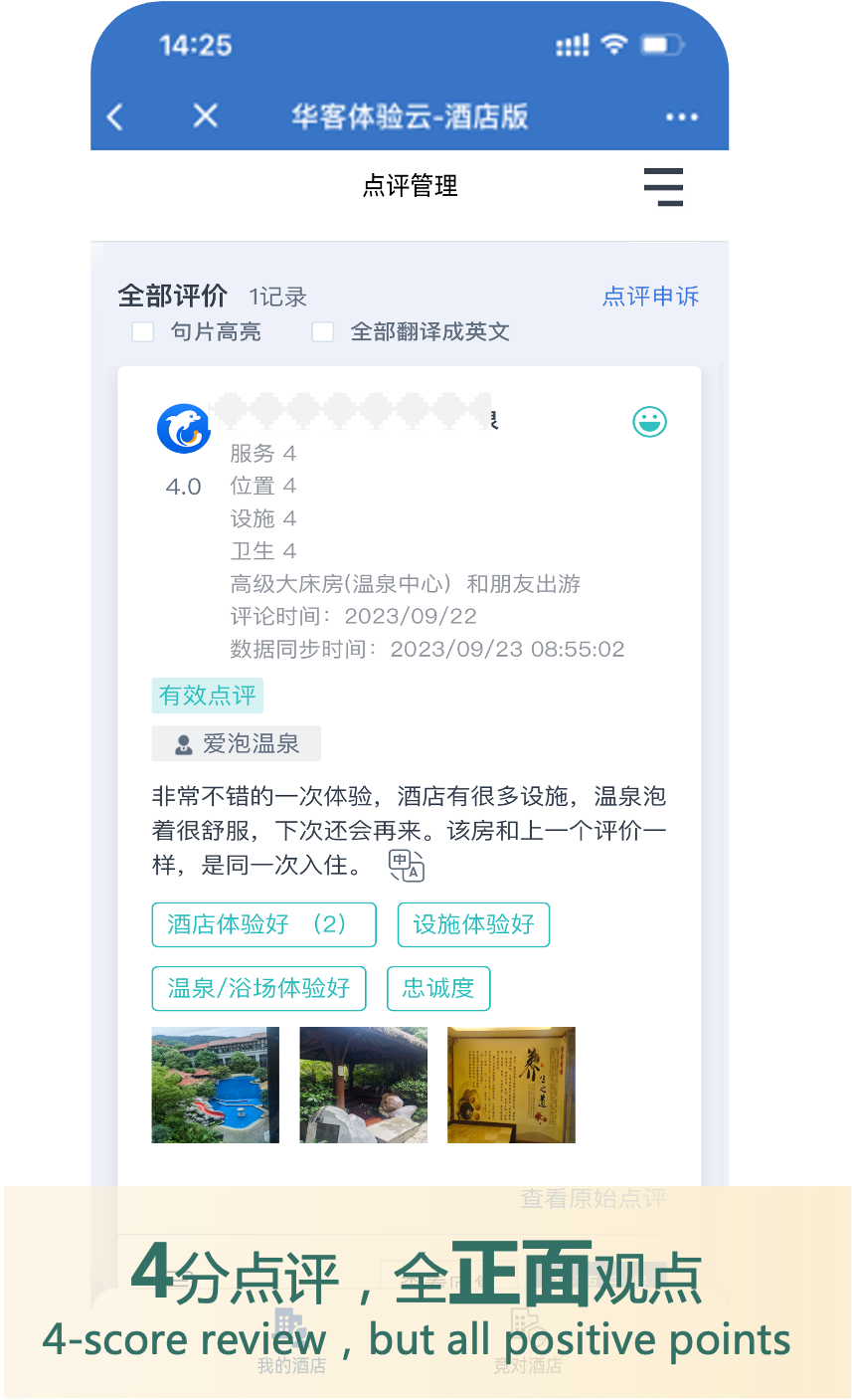 · 满意的客户,带来更好的口碑。包括OTA点评分的显性口碑和客人线下分享或不分享的隐性口碑。