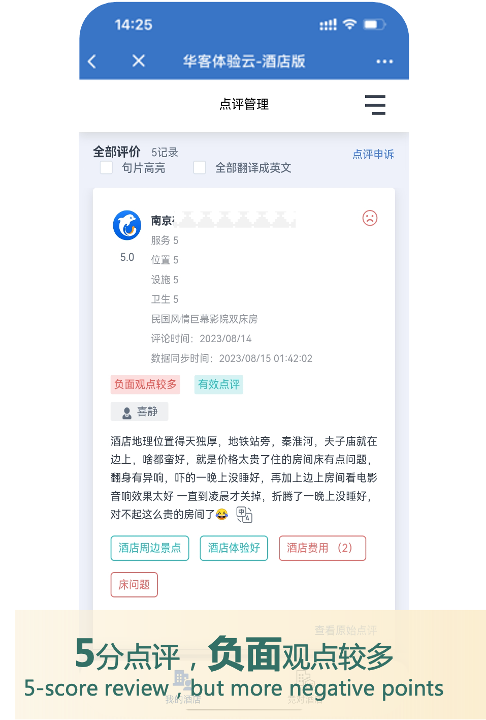 酒店需要知道自己的住中客诉率。