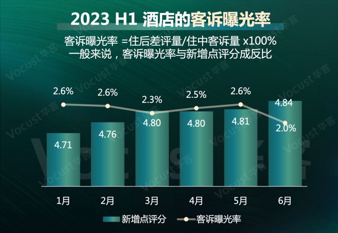 华客数据研究院发布的2023年1-6月的数据显示,客诉曝光率越低,新增点评分越高。