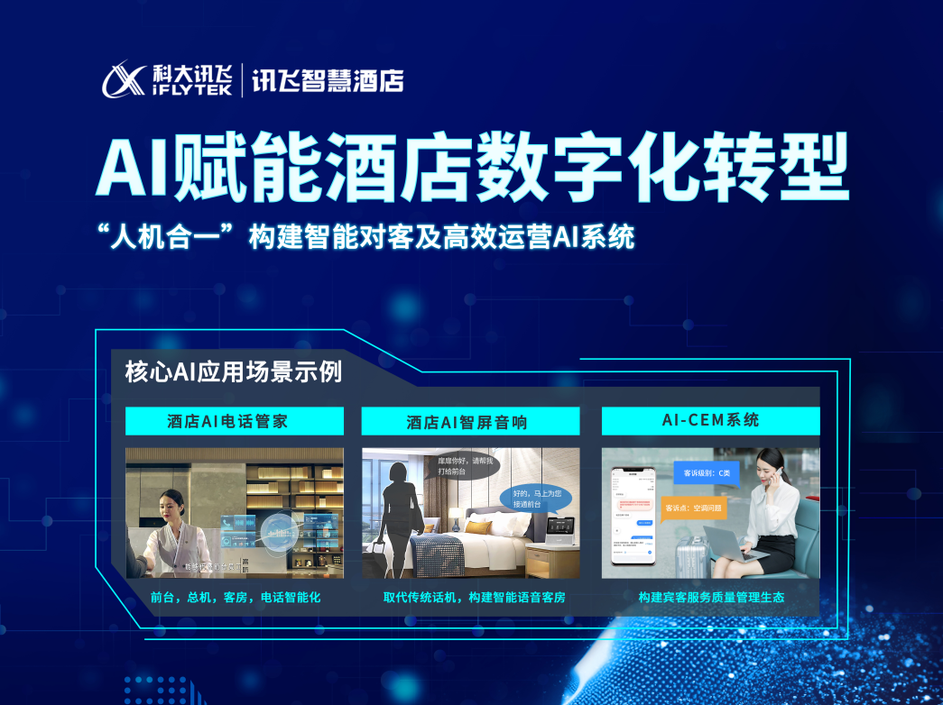 科大讯飞酒店智能平台,以语音AI为入口,以人机结合、智能运营、创新服务为核心,构建全面智能对客服务及业务运营系统酒店AI平台。以定制化服务深入酒店垂直领域,专注酒店业务需求,共促酒店行业变革,打造酒店创新服务。