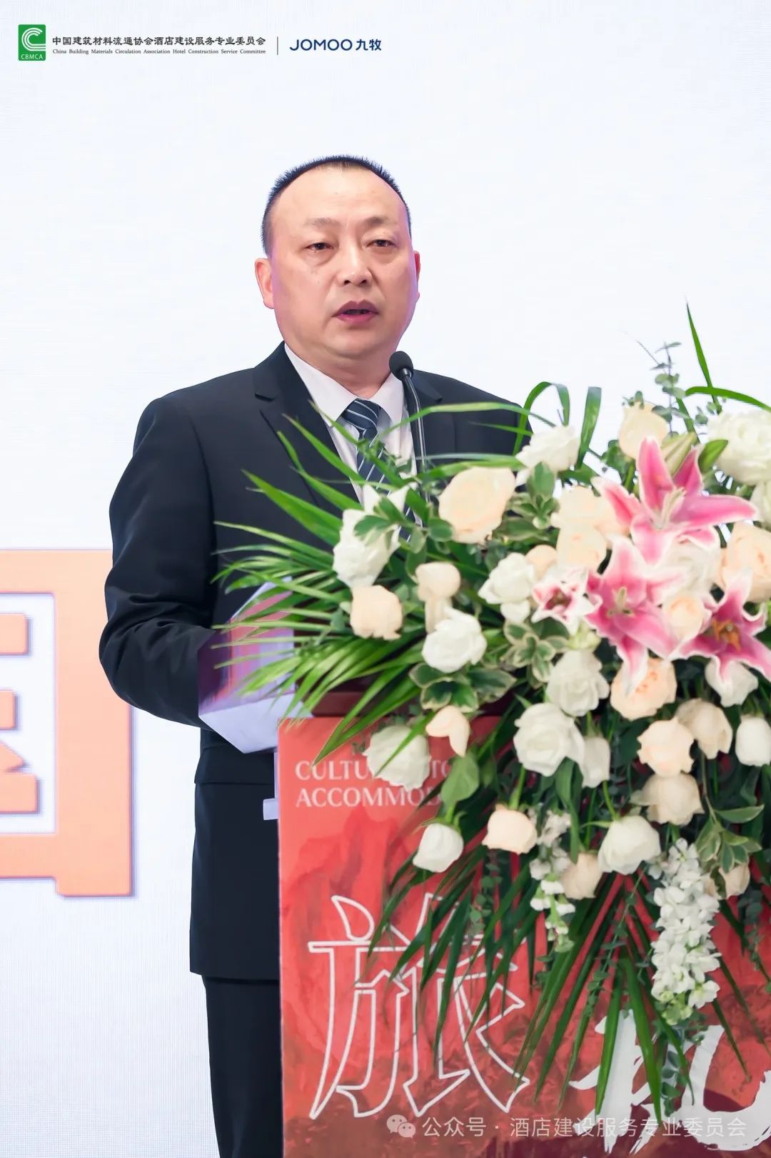 在文旅住宿节的开幕式上,中国建筑材料流通协会会长秦占学发表开幕致辞。