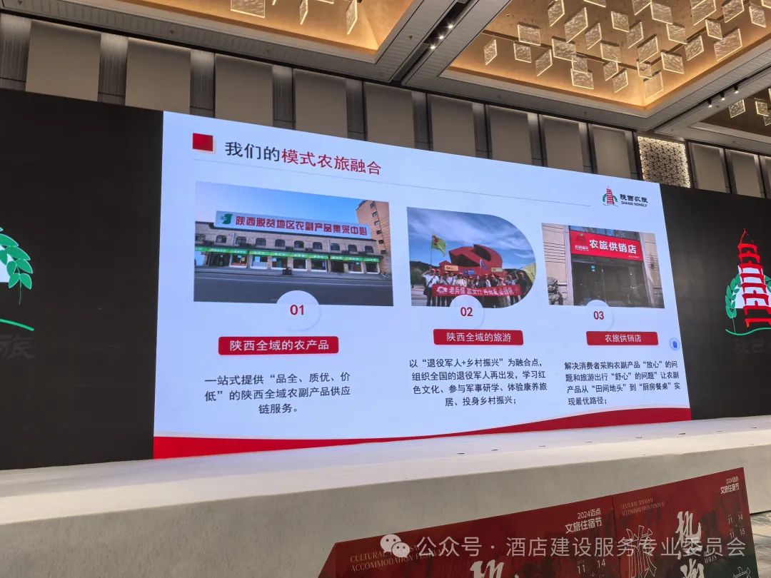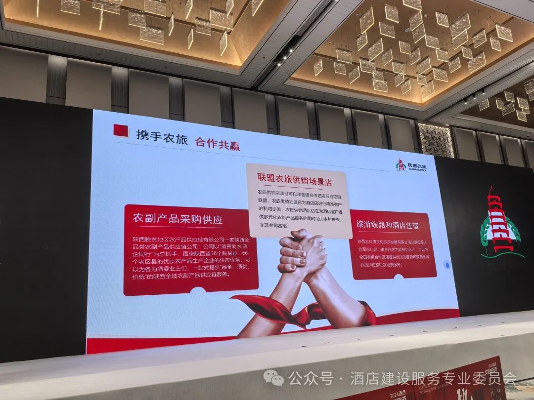 值得关注的中国建材流通协会酒店建设服务专业委员会主席陶舰先生和来自革命老区延安的陕西农旅集团商业运营管理公司总经理吴锦旗先生现场进行了酒店文旅与农业深度融合兴农共富,全力支持革命老区战略合作签约仪式!