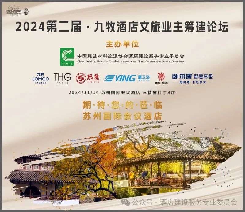 作为2024迈点文旅住宿节战略合作伙伴,本次酒委主办第二届九牧文旅酒店业主筹建论坛,采用特邀制非报名制,集聚百位行业头部,标杆品牌及酒店文旅业主董事长总裁,专家院长及媒体精英智慧和顶流资源,诸位贵宾所在头部企业及品牌累计年营业额突破数千亿,真正体现行业标杆引领和头部品牌价值,携手共进,业主兴则中国酒店文旅兴,共兴中国酒店文旅业伟大复兴!非常感谢大家鼎力支持!