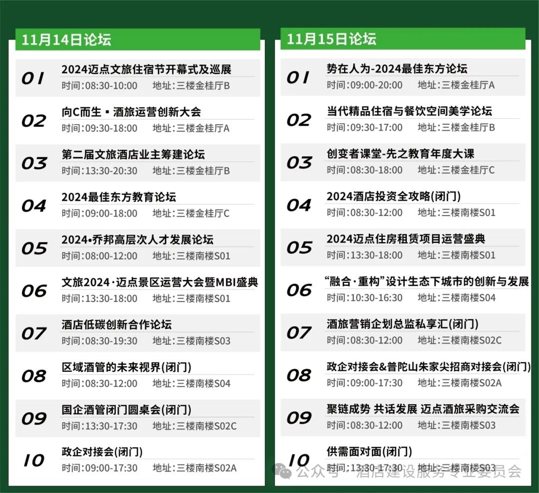 2024年11月14日-15日,一年一度的中国旅游住宿和文旅景区行业盛会【迈点文旅住宿节】在苏州国际会议酒店盛大启幕。本场旅宿节设置超过20场的细分主题论坛,内容聚焦人力转型和运营深耕,全方位剖析文旅行业态势,提供高质量的内容输出,把脉行业未来发展。