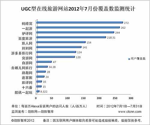 劲旅网讯,根据劲旅咨询-劲旅智库对UGC(全称为User Generated Content,即用户生成内容)型旅游" >在线旅游网站和产品监测结果显示,7月份主要UGC型在线旅游网站和产品用户覆盖数排名前十位的是:蚂蜂窝、一起游、驴评网、百度旅游、旅人网、到到网、游多多旅行网、穷游网、自游网、去哪儿网旅行。