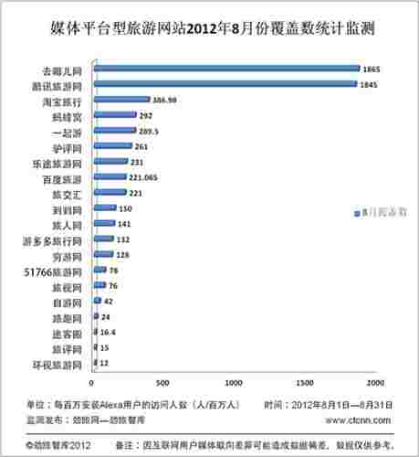(图二:媒体平台型旅游网站8月份用户覆盖数统计监测)