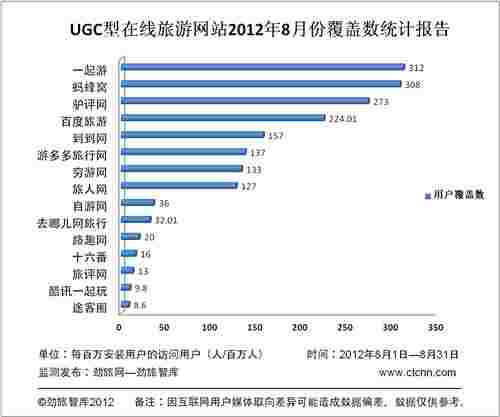 (图一:主要UGC在线旅游网站8月份用户覆盖数统计)