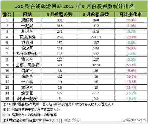 9月份主要UGC型在线旅游网站和产品监测排名