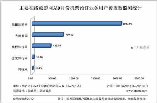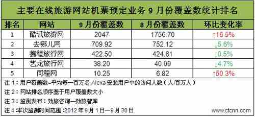 9月份主要在线旅游网站机票预定业务覆盖数监测