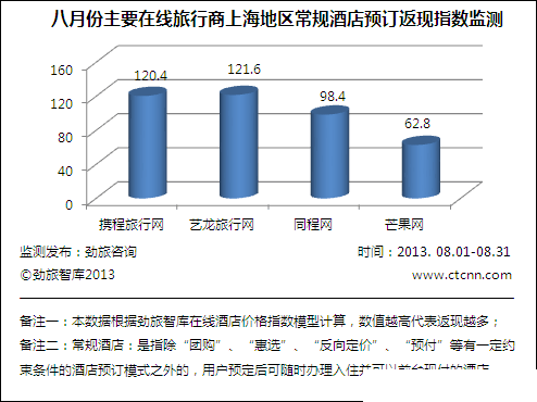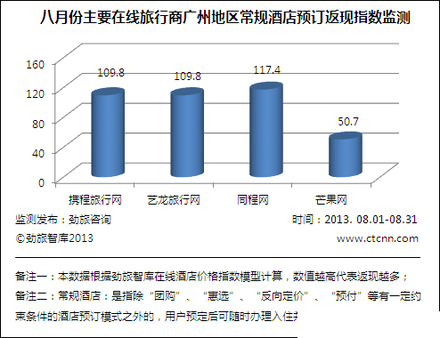 图三:2013年8月主要在线旅行商常规酒店预订返现指数监测