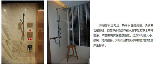 关于舒适性,这是国家旅游局新酒店标准中特别注重的一个内容,酒店大量的产品最终落脚在“舒适性”上,“实用性”是基础,舒适是目标,影响舒适度的因素很多,较为突出和共性的问题有以下几个:一是空调温度和空气质量,许多酒店为了节能降本,在中央空调上做文章,有的分时段调控,有的新风补给量不足,进入酒店觉得闷热空气不好,基本的舒适度没有,其实,空调很重要,不仅要解决合理的温度和湿度,而且要保证空气的新鲜度,空气质量取决于新风量补给,自然通风也是个办法,但主要还是靠中央空调调节。二是许多酒店客房的床垫和枕头不舒适,床垫非常重要,舒适的床垫有利于睡眠。枕头的毛病出在枕芯上,使用的材质大有讲究,这二个问题主要因素是采购时一味压价,厂方要追求目标利润,结果是品质下降,当然也有专业性问题,是否有品味鉴别,从布草的质量看,只要使用80*60支纱,应该没有问题。客房是酒店核心产品,床垫、枕头、被褥是核心中的核心。三是淋浴房,水压充足,热冷水温控到位,洗澡就会很舒适,但是不少酒店存在水压不足和下水不畅现象,严重影响宾客的舒适度。当然淋浴房大小、换风、灯光强弱、沐浴用品的优劣等都会对舒适度产生影响。