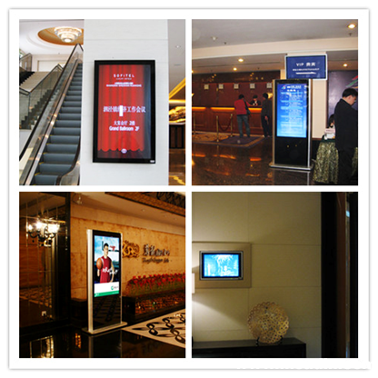 酒店数字标牌系统通过在大厅、服务台、餐厅、会议室等场所覆盖性布置,对实现酒店数字化、智能化起到重要作用,在酒店的各个区域,顾客都能享受到数字标牌带来的优质服务。有效地加强酒店与客人的信息沟通,提升酒店的整体形象和竞争力。数字标牌取代纸片、标牌、条幅或其它标识,不仅缩短了制作时间,节省成本和人工,更能提升场所高端大气的形象。同时向客人介绍酒店的各项消费娱乐及服务指南,促进客人的消费欲望,有效增加酒店销售收入。