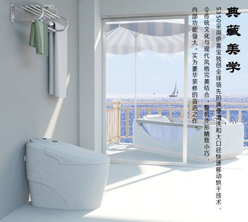 伊喜宝E-350智能马桶是一款功能齐全,性价比很高的产品。产品拥有众多人性化功能独创的全球领先的通便清洗和大口径快速移动烘干技术,令传统文化与现代风格完美结合,整机外形精致小巧,内部功能强大,精致流畅的曲线勾勒出华贵典雅的气质,特别适合酒店使用。