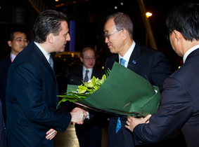 从左至右:上海凯宾斯基大酒店总经理Patrick Martinez、联合国秘书长潘基文