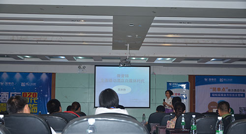 销售总监粟琳静与大家分享《微营销 全面撬动酒店自媒体时代》,精彩的发言获得嘉宾一致认可,并总结互联网五大新思维:眼球、互动、分享、数据思维、用户体验。此外,现场的微信小游戏互动,引起一阵小轰动。
