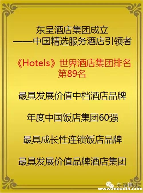 2014年,东呈酒店集团获得了众多荣誉,硕果累累。我们首次参加全球权威杂志《Hotels》的世界酒店集团排名,就进入世界百强之列。
