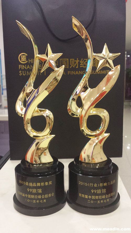 99旅馆凭借日益强大的品牌影响力,一举斩获两项大奖——“2015行业最具影响力品牌奖”和“2015最佳品牌形象奖”。