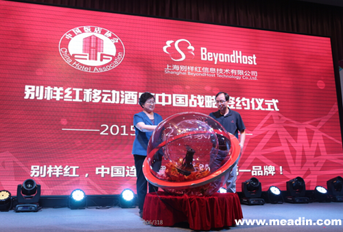 9月12日下午,上海别样红信息技术有限公司承办的酒店遇见云PMS专场论坛,现场由别样红技术副总裁张勇先生和中国饭店协会副会长吕毅华女士共同开启了别样红移动酒店中国战略签约仪式。中国饭店协会副秘书长丁志刚、别样红技术副总裁张勇、速8酒店(中国)集团高级副总裁徐钊、Ucloud华北区高级经理付广宇,别样红市场&销售副总裁黄鹤萍、驿家365连锁酒店电子商务总监洪旭分别围绕着大数据、云计算如何管理好我们的酒店分别作出了深入解析。