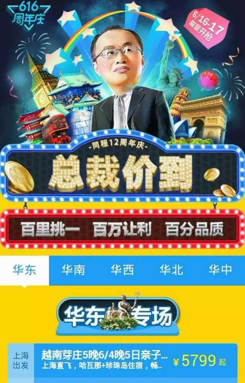 6月14日,同程旅游正式上线“总裁价到百万让利”活动,提前引爆2016同程全球供应商大会