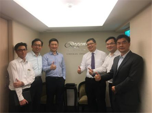 人员介绍(左起):飞讯项目经理吴志明Jacky, 飞讯副总经理关雅琴Erica, 飞讯总经理王雯皓Harris, 安美互联总裁邓卫东David, 安美互联海外业务总监钱平晟Benny