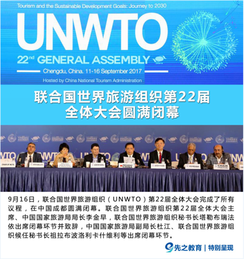 9月16日,联合国世界旅游组织(UNWTO)第22届全体大会圆满完成各项议程,在中国成都圆满闭幕。