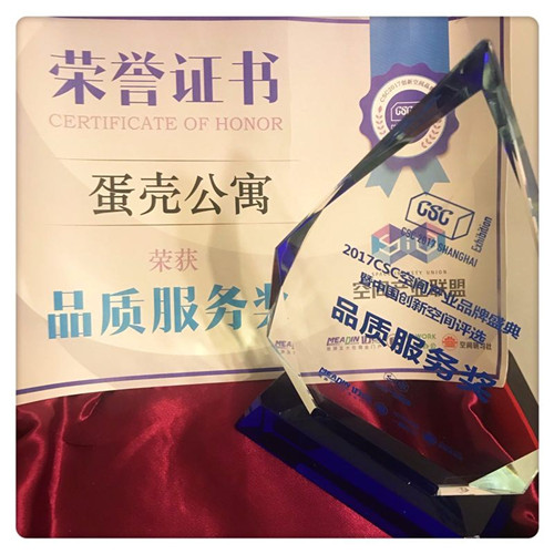 这场活动,被媒体称赞为最真诚的“共享空间奥斯卡”盛宴。在众多创新空间品牌中,蛋壳公寓脱颖而出,获得了“品质服务奖”。