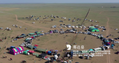 在草原深处,夏季有很多民间的那达慕在自发地举办,多以孩子剃头会、老人过生日等缘由不定期举行。我们参加的这场那达慕在锡林浩特盟阿巴嘎旗,从叶赫家的牧场出发,开车整整走了一天。从公路进入乡间的土路还要再开几乎二十公里。来到草原深处一个没有任何标识的地方,已经聚集起了很多当地牧民、帐篷、车、马,相当热闹。主人家搭起十个气派的大蒙古包,其余的人们就在草场上随意安营扎寨,我们的帐篷搭在不远的草地上。