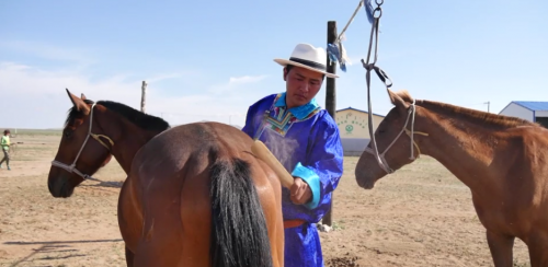 七八月份牛肥马壮,是酿造马奶酒的季节,非物质文化传承人图雅家,距离江树军家仅十几公里,他以世代酿造蒙古族的“策格”,也就是酸马奶而远近闻名。