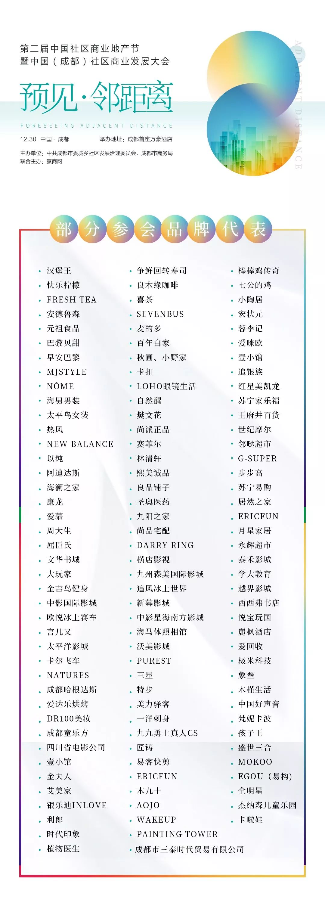 优质品牌如何一触即达?马上报名第二届中国社区商业地产节暨中国(成都)社区商业发展大会!更多出席品牌详细信息,请点击【阅读原文】了解!