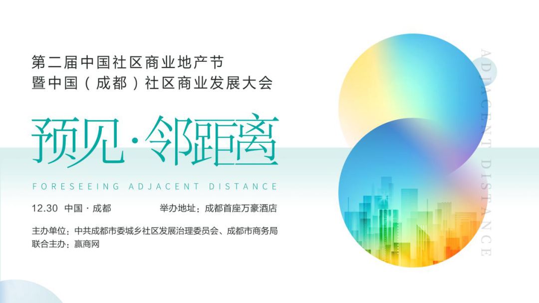 为了联动全国优秀的社区商业地产力量,一场旨在探讨新时期社区商业发展新思路、新方向的行业盛典——第二届中国社区商业地产节暨中国(成都)社区商业发展大会,由中共成都市委城乡社区发展治理委员会、成都市商务局主办,赢商网联合主办。12月30日,在成都首座万豪酒店,以“预见·邻距离”为主题,与业内1000+精英人士,共议社区商业美好未来。