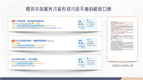 两年前,诗莉莉集团推出“尖叫服务”,客人进店后,前台便会创建一个“360°立体服务群”,管家、汤泉调温师、摄影师、主厨等均在群里stayby式服务。当客人诧异于服务如此周到时,又会意外收到重重惊喜:一张周边游玩的地图、免费的摄影、全天候的免费下午茶、晚间甜点......体系化落地后,诗莉莉携程多家门店冲上4.9分,每天都能收到客人发自内心的赞美,川流不息的极致好评让“爆款”名副其实。